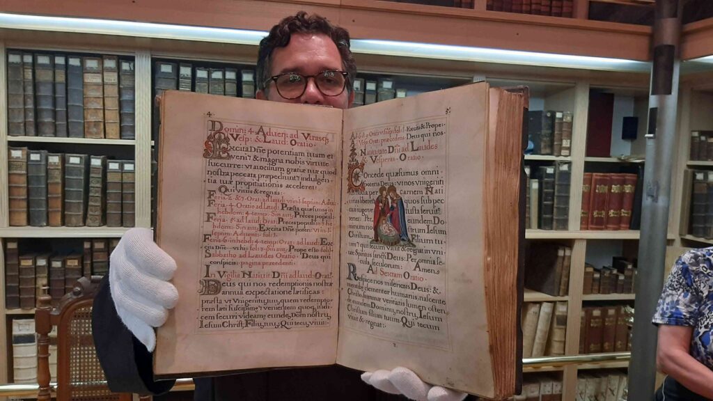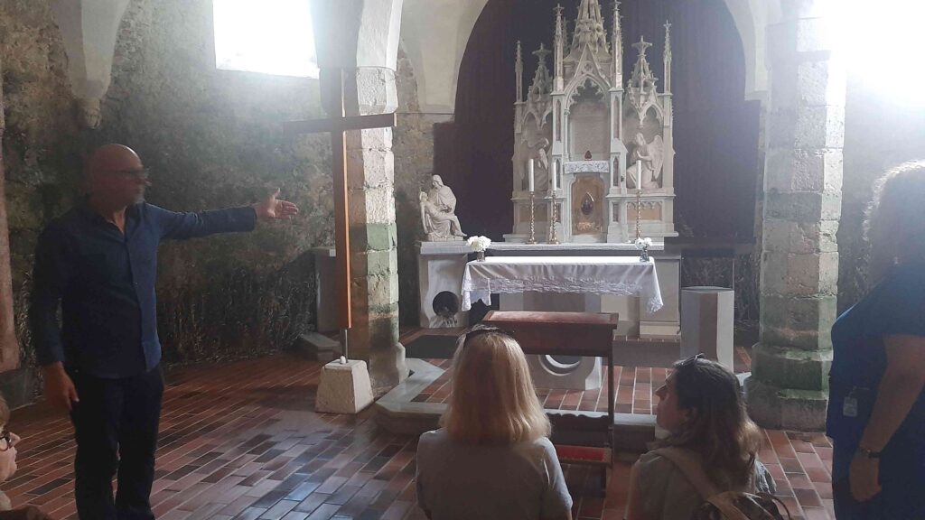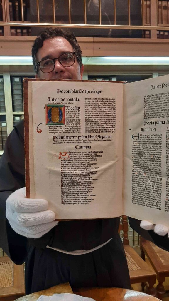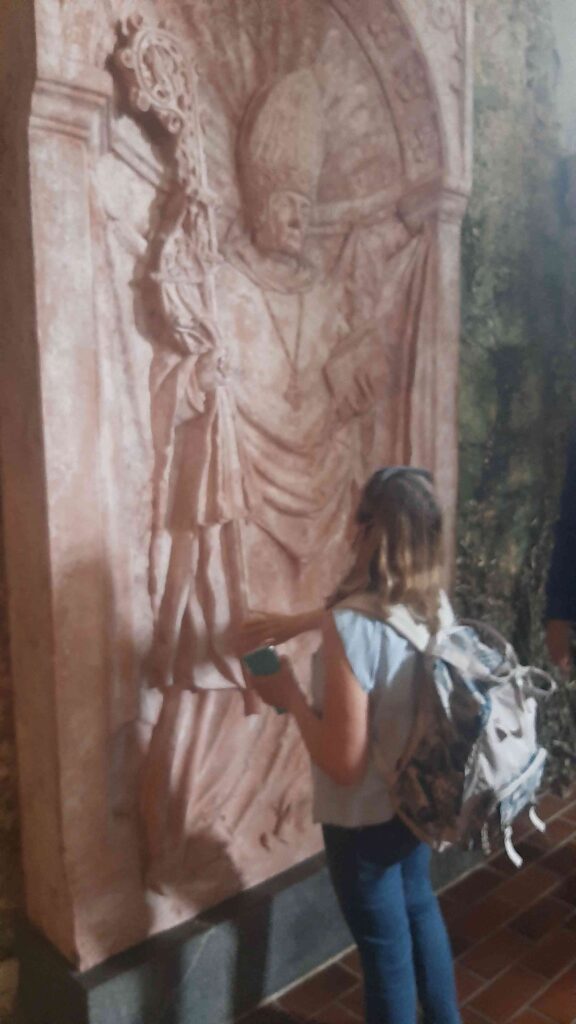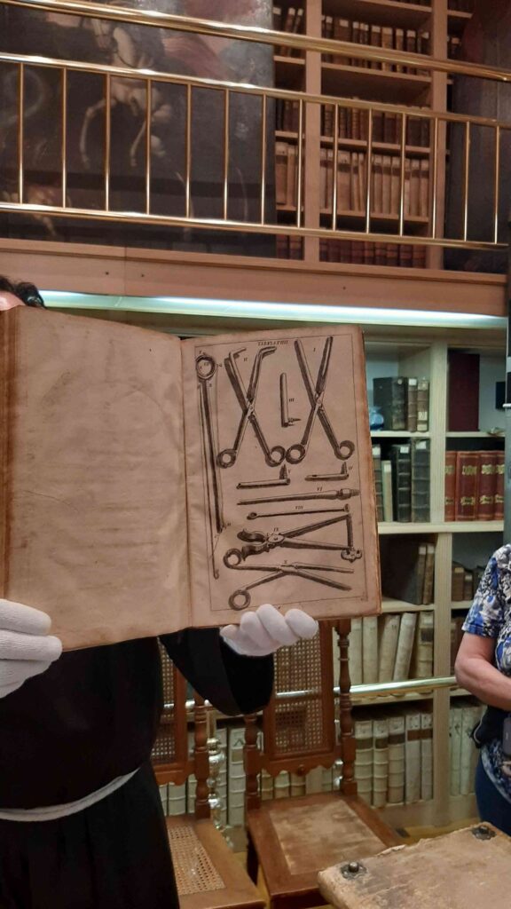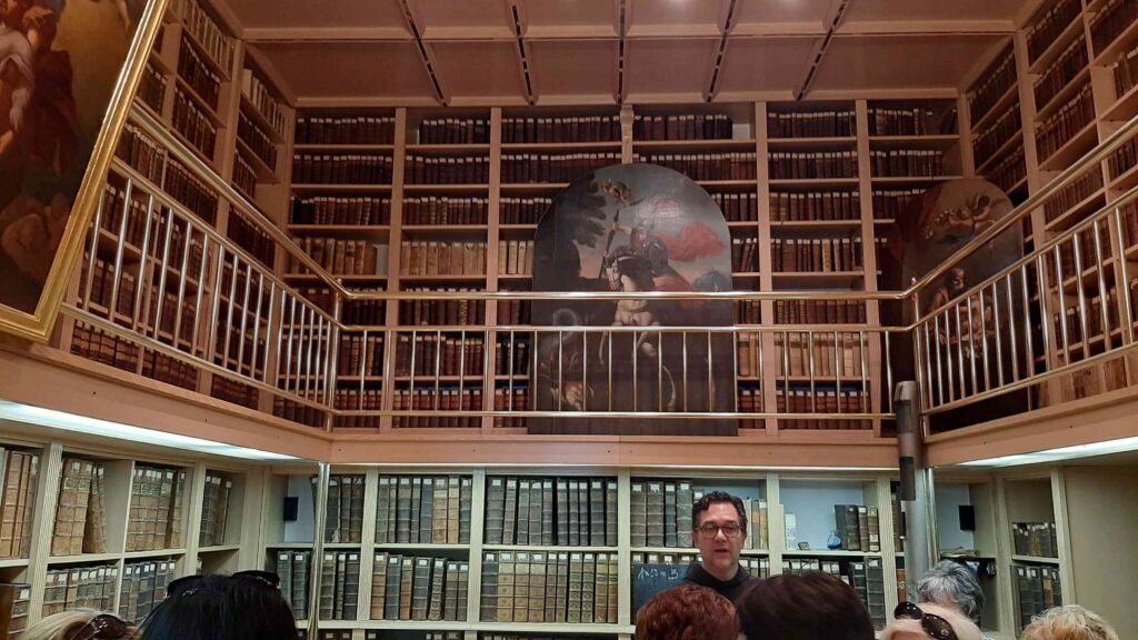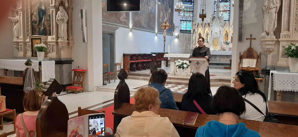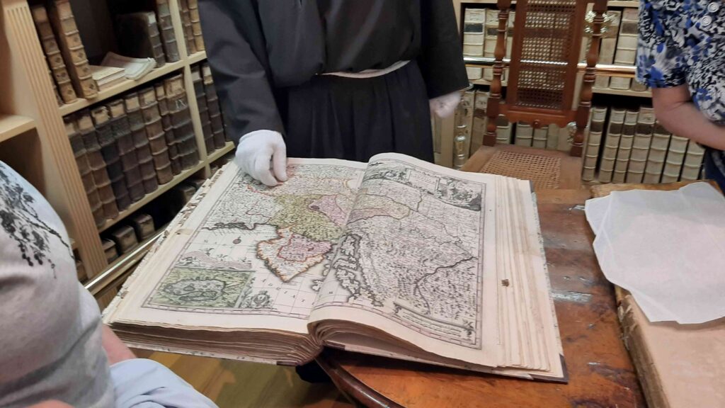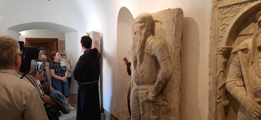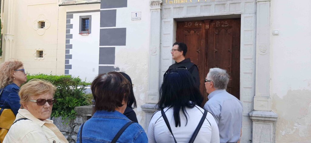 Zaradi lažje izvedbe smo se razdelili v dve skupini: prva je šla na ogled Frančiškanskega samostana in knjižnice. Sprejel nas je pater Tomaž in nam predstavil zgodovino samostana, nam razkazal cerkev in križni hodnik ter samostansko knjižnico, ki velja za najstarejšo novomeško knjižnico. Vsebuje preko 20.000 knjižnih enot, med katerimi ima največjo vrednost in pomen več kot 30 inkunabul (prvotiskov).