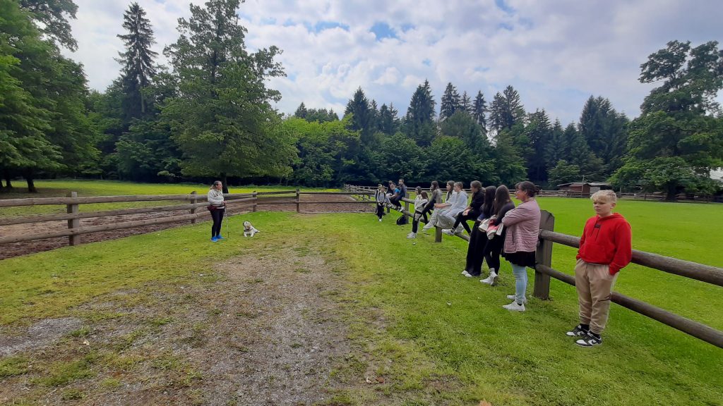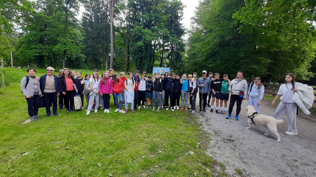 V ponedeljek, 19. 5. 2025, smo se s 53 učenci in učenkami 7. razredov ter tremi učiteljicami Osnovne šole Šmarjeta srečali v Češči vasi, kjer smo se z zavezanimi očmi, spremljevalci in belo palico podali na odkrivanje čutne gozdne poti. Prisotni so z orientacijo ograje odkrivali različna drevesa, tipali proizvode narave, ki so shranjena v izdolbenih drevesnih deblih (lubje, listje, mah,…), na dveh stolih, oblikovanih iz posekanih dreves z zaprtimi očmi in preostalimi čutili naravo in se na koncu preizkusili v motoričnih spretnostih, predvsem lovljenju ravnotežja na hlodih različne višine in vodoravno položenih debel.
