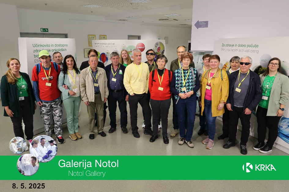 Članice in člani s spremljevalci Medobčinskega društva slepih in slabovidnih Novo mesto smo si 8. maja 2025 ogledali del proizvodnje Krke, d. d., Novo mesto, in sicer Notol 2, Obrat za proizvodnjo trdnih oblik zdravil, ki je plod Krkinega znanja.