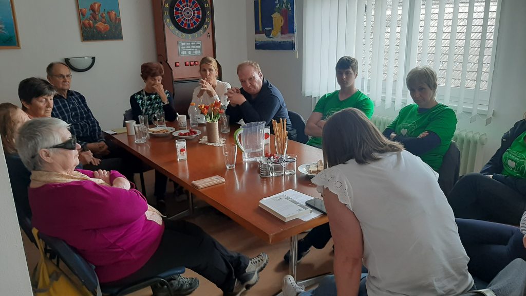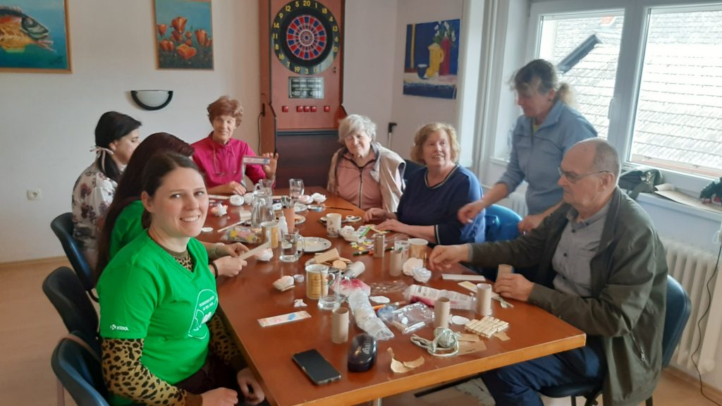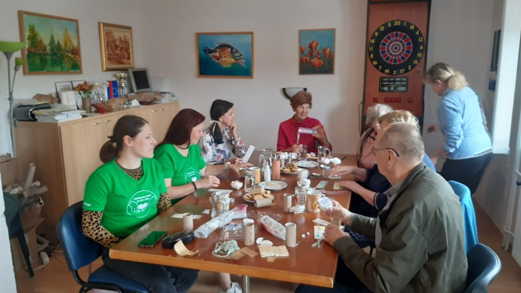 Članicam in članom našega društva so pomagali pri treningu vrtnega kegljanja na vrtu društva, sodelovali so v pogovoru o prebrani knjigi Beograjski trio (društveni bralni krožek Beremo v temi) in pomagali na tečaju ročnih del.
